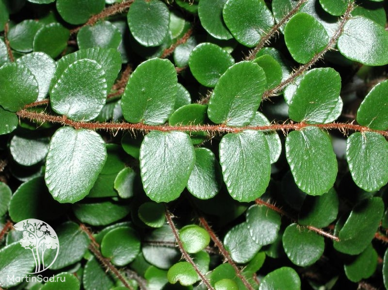 Комнатное растение, довольно нетребовательна, нуждается в комнатных температурах, перистые листья состоят из стержня, вдоль которого на черешках сидят округлые или овальные листья, листья круглолистные темно-зеленые сверху и более светлые снизу, края слегка зазубрены или ровные.