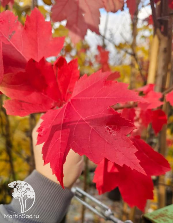 Листва: 3-х или 5-тилопастная, летом зеленая, осенью ярко-красного цвета, который сохраняется до поздней осени.