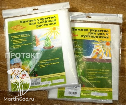 Для производства чехлов для укрытия растений используется нетканый материал спанбонд. Его плотность составляет 80 г/м2, что достаточно для зимовки культур в нормальных климатических условиях. На аномально холодную зиму можно использовать 2 «колпака» на одном кусте.