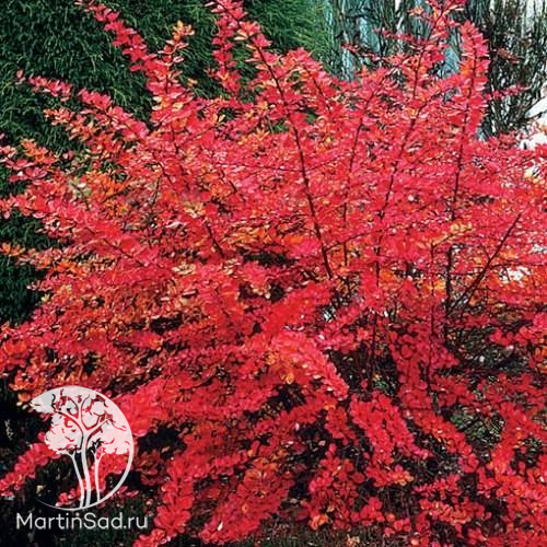 Листья мелкие, изящные, ярко-зеленые сверху и сизые снизу. К осени кустарник окрашивается в пылающие ярко-красные тона.
