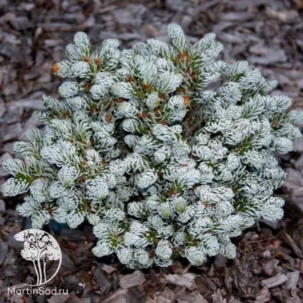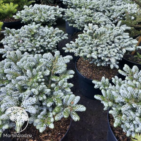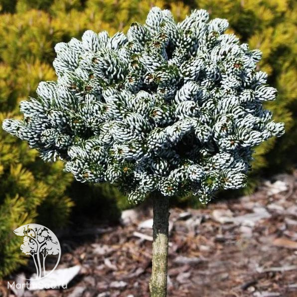 Пихта Когоутс Айсбрейкер - изысканный карликовый сорт пихты корейской, выведенный в Германии учёным Йоргом Кохоутемом. Эта шаровидная пихта своей серебристо-голубой закрученной хвоей чем-то напоминает шар, наполненный маленькими кусочками колотого льда. Отсюда и происходит название пихты, что в переводе с немецкого обозначает Ледокол Кохоута. Это уникальный сорт карликовой пихты с множеством густо расположенных веточек. Растение отличается плотной, подушковидной формой и серебристо-голубой с белым отливом мягкой хвоей. Растение медленнорастущее и к 10 годам достигает всего лишь 30 см. высоты и 50 см. в диаметре. Взрослое растение может достичь высоты 50 см. и 100 см в диаметре. В штамбовом варианте этой культуры высота будет зависить от высоты прививки. Кора в молодом возрасте светло-коричневая, потом становится серой. Иголки 1,5-2 см длинной, серебристо-голубого цвета, мягкие с тупыми кончиками, серповидно изогнутые так, что видна их нижняя белая сторона. Шишки пихты имеют вид небольшого цилиндра и расположены на ветвях таким образом, что их концы смотрят вверх, придавая им вид свеч. Они вырастают до 6 см в длину и 2-3 см в ширину. Кора молодой пихты корейской Когоутс Айсбрекер светло-коричневого цвета, однако у взрослых растений кора темнеет, приобретая сероватый оттенок. Диаметр ствола в среднем составляет 5 см. Пихта Когоутс Айсбрейкер хорошо развивается на солнце или лёгкой полутени, защищённых от ветра местах. Рекомендуется регулярный полив, особенно в жаркий сезон. Пихта корейская хорошо развивается на дренированных, умеренно влажных плодородных почвах со слабокислой реакцией. Благодаря своей компактной форме, пихта корейская Когоутс Айсбрейкер часто применяется в ландшафтном дизайне, гармонично вписываясь и дополняя любые композиции. Отлично смотрится пихта, посаженная сольно посреди газона. Такую шарообразную пихту можно использовать для создания восхитительного вида в рокариях, альпийских горках, садах в японском стиле. Карликовые медленнорастущие сорта подходят для выращивания в кадках на террасах или летних площадках. Очень ценными являются фитонциды, выделяемые хвойниками, которые очищая воздух, благоприятно влияют на организм человека, повышая его иммунитет.