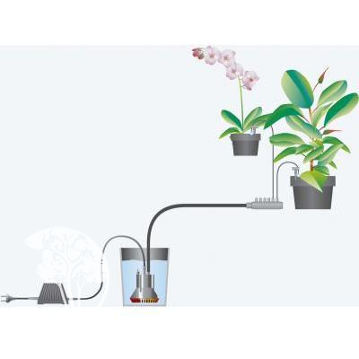 Принцип действия комплекта для полива заключается в следующем: подача насосом воды из емкости к отдельным растениям по 1 минуте, благодаря таймеру, встроенному в трансформатор с девятилитровой емкостью. Одновременно можно поливать до 36 растений. В первую очередь требуется определить количество воды, необходимое растениям ежедневно. Чтобы почувствовать правильную дозировку воды, можно испытать систему до начала отпуска в течение нескольких дней.