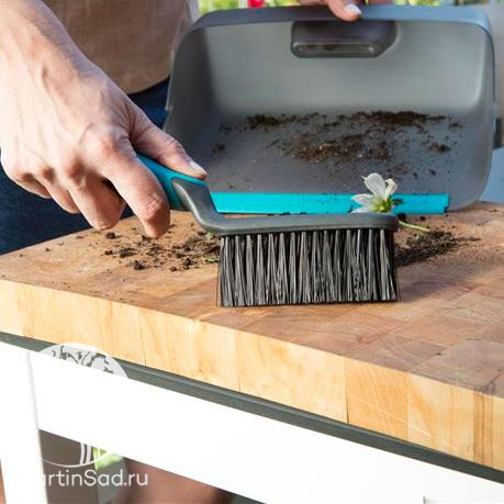 Комплект садовых инструментов идеально подойдет для ухода за растениями на балконе, террасе и в саду. В комплект входит все самое необходимое: совок для высадки и пересадки растений, секатор для обрезки, мотыжка для прополки почвы, крышка-совок и щетка всегда позволит поддержать порядок на рабочем месте. Удобный держатель на контейнере, позволит хранить инструмент в удобном для Вас месте.