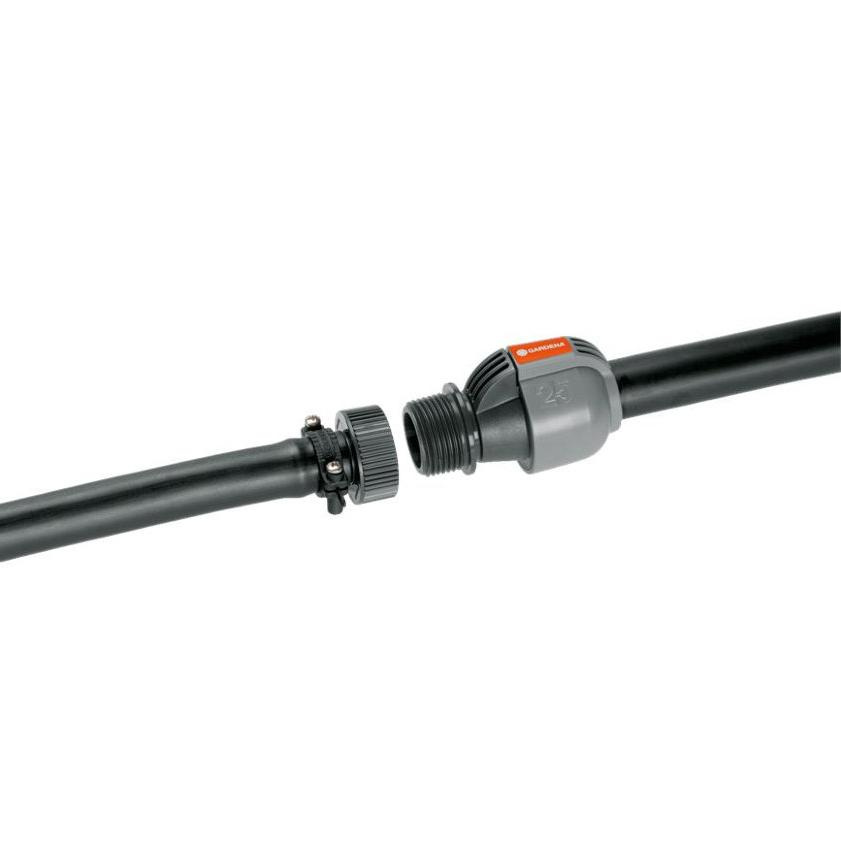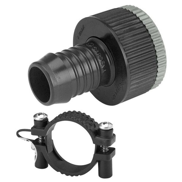 Штуцер резьбовой Gardena 01513-27.000.00 предназначен для присоединения шланга диаметром 19 мм к крану и садовым насосам Gardena. Штуцер изготовлен из высококачественного материала, что гарантирует долгий период эксплуатации. Он надежно закрепляет шланг с краном с помощью хомута, идущего в комплекте, исключая вылетание. Используется для кранов с резьбой G3/4 и G1.