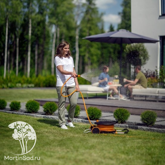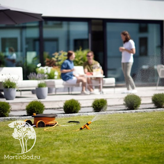 Катушка со шлангом 1/2", 30 м и набором аксессуаров Fiskars 1023644 отличается широким спектром применения. Подходит для мойки и полива больших участков 300-500 кв.м. Колеса обеспечат удобную транспортировку тележки к месту применения. В специальном отсеке хранятся аксессуары: регулируемая насадка распылителя, штуцер для подключения шланга к крану, шланговые соединители, держатель опрыскивателя и фиксатор для удержания катушки на одном месте. Размеры катушки: 250х566х398 мм.