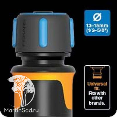 Коннектор FISKARS подходит для быстрого и легкого соединения шлангов, пистолетов, штанг и дождевателей. Механизм без усилий защелкивается и разъединяется, поэтому не нужно тратить время на вкручивание при установке.