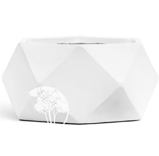 Кашпо TREEZ ERGO Rombo Низкая чаша-многогранник Белый камень