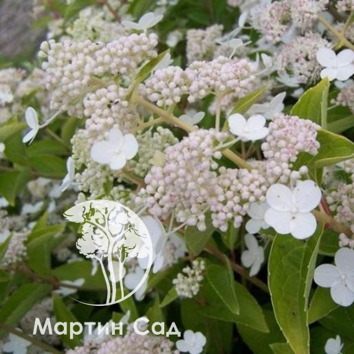 Особенности соцветий: метельчатые изящные, состоящие из цветков двух типов — стерильных и плодящих. Первые имеют крупные белоснежные чашелистики, меняющие цвет до зеленоватого или розового. Вторые находятся по центру, очень мелкие.