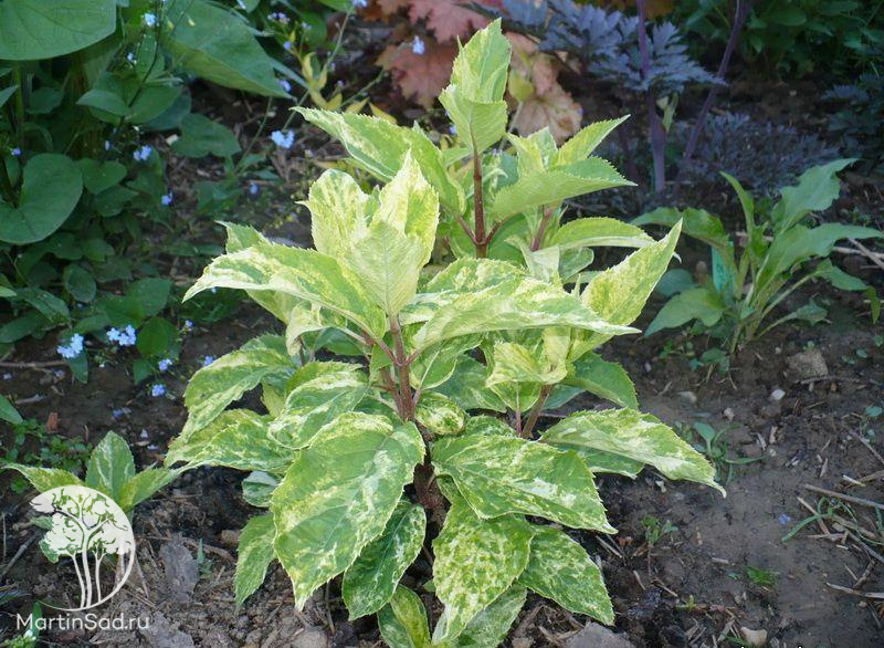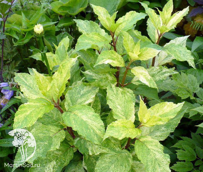 ОписаниеПримечательно то, что молодые листочки способным менять окрас – сначала они светло-зеленые, а потом темнеют, а на поверхности появляются кремово-желтые размытые крапы. За счет этого даже в периоды покоя (когда нет цветения) куст выглядит очень эффектно.