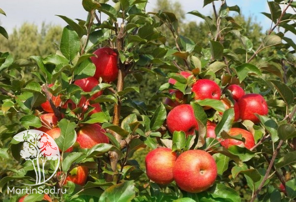 ОписаниеНачинает плодоносить на четвертый год. Молодое шестилетнее дерево дает до 9 кг яблок, взрослое − 23. Срок цветения средний, продолжительность – длинная. Срок созревания – октябрь. Деревья слаборослые со смешанным типом плодоношения, опыляются сортами: Эверест, Годен Делишес, Айдаред, Аскольд, Румяный альпинист, Внучка.