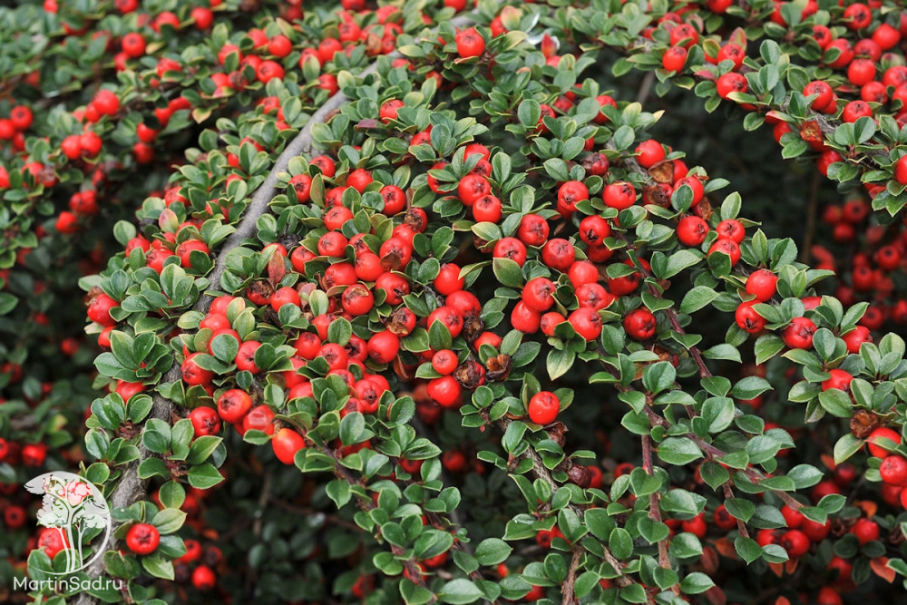 Весной (май-июнь) куст зацветает мелкими, многочисленными цветочками. Ягоды кораллово-красные, шаровидные, 1 см, за счет них кустарник становится более декоративным.