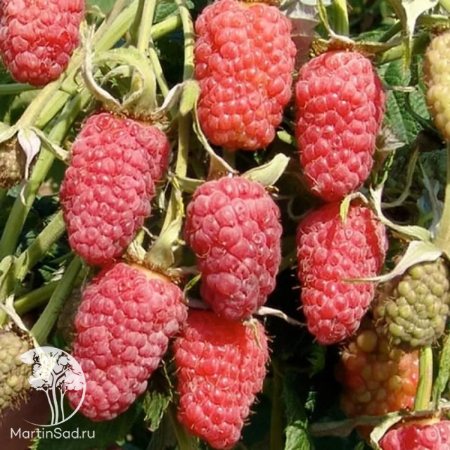 Размеры ягод:  4-5 см в длину, и 15-18 граммов в весе. Кожица спелых плодов тёмно-бордового цвета, блестящая. Мякоть – сочная, ароматная. Вкус малины – сладкий. Дегустационная оценка – 4,8 балла из 5.