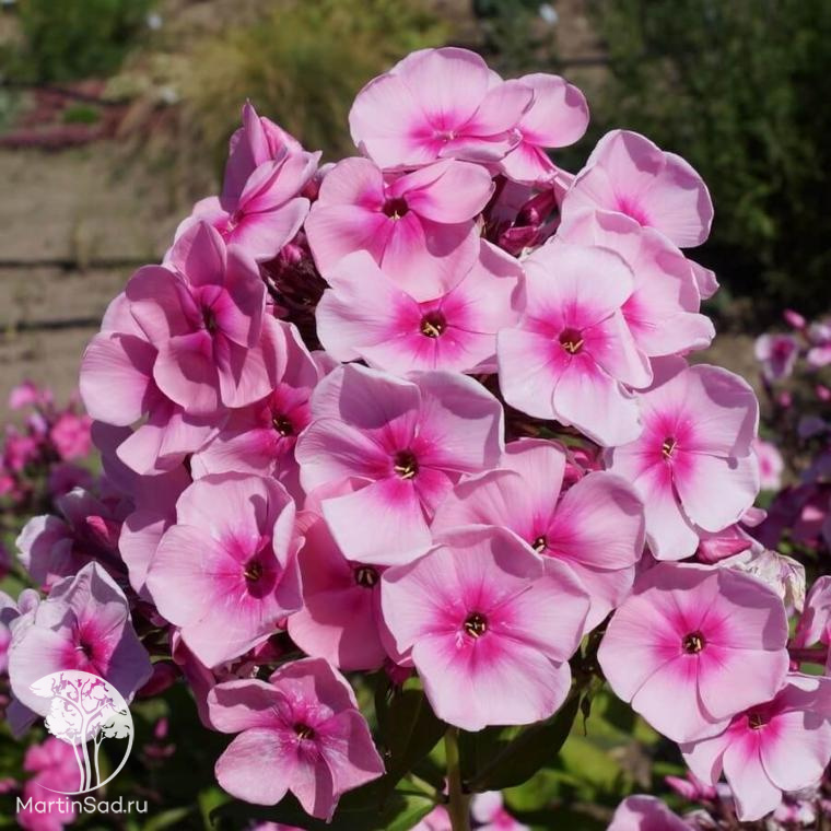 ОписаниеВ конце июня наступает период цветения. Он напоминает появление ярко-розового кружева на каждом из них. Соцветия очень пышные, округлые, отдельные цветки в них формируют шар. Лепестки ровные, блестящие, светло-розовые у краев с переходом в яркий малиновый у сердцевины. Флокс Милый друг эффектно смотрится отдельно или в цветочных массивах.