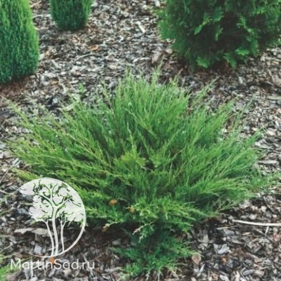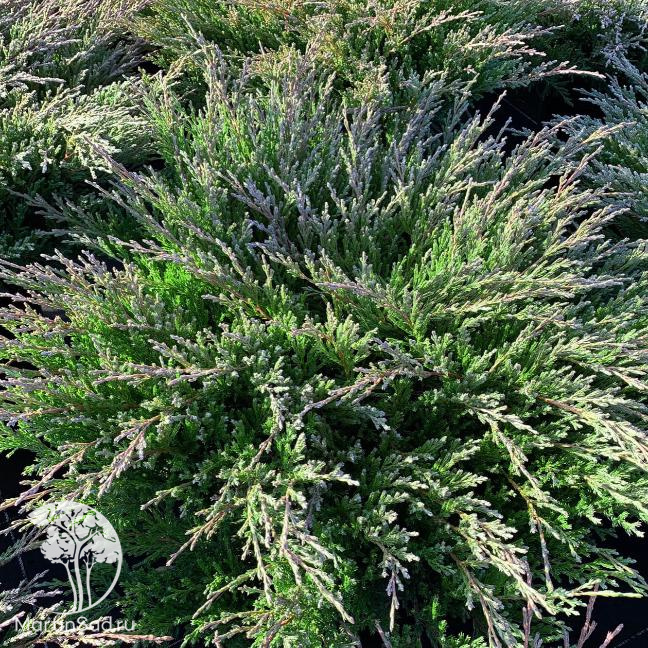 ОписаниеКрона подушкообразная, аккуратная, иногда может быть и воронкообразной. Она ровная, плотная, образована из довольно ветвистых побегов. Последние поднимаются вверх от центральной части куста по косой линии. Покрыты коричневой корой без опушки. У взрослых и старых можжевельников может быть слегка потрескавшейся. Хвоя мелкая и чешуйчатая, приятная на ощупь. На ростовых ветвях прослеживается редкое расположение мутовками, на других же частях растения покров плотный. Хвоя узкая, по длине короткая. Имеет уникальный окрас: весной и летом она светло-зеленая, или имеет зеленый с сизым отливом цвет, а в холодные периоды она в основном фиолетовая (реже бывает коричнево-бурой).