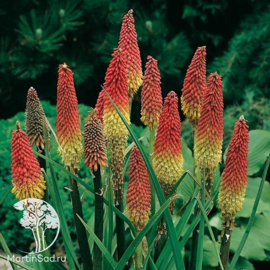 Книфофия ягодная Микс (смесь: алых, оранжевых, жёлтых и кремовых)