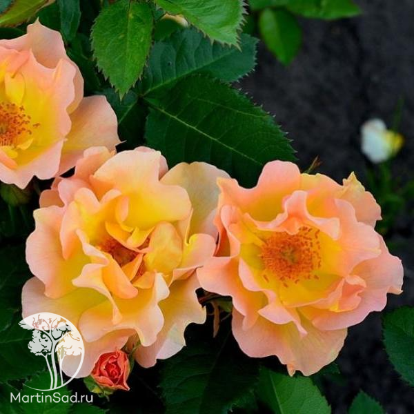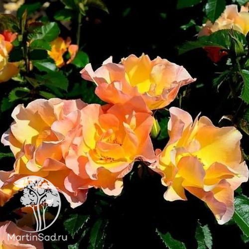 Роза парковая Модэн Санрай – одна из первых роз из группы морозоустойчивых парковых (Parkland) растений, очень устойчивая к заболеваниям, повторноцветущая желтая роза, предназначенная для взращивания именно в холодных регионах. Кусты растения прямостоячие, плотные, округлой конфигурации, достигают высоты до 70-100 см и ширины до 60 см. Листва очень привлекательная, темно-зеленая, блестящая. Шипы малые, листочки тёмно-зелёных оттенков, средних габаритов, глянцеватые, с плотной текстурой. Бутоны бокаловидной конфигурации. Цветки полумахровые (12 лепестков), выраженного жёлто-оранжевого или желтого окраса, который в прохладную погоду может меняться на розоватый тон. Соцветия многоцветковые. Размеры цветков в диаметре достигают 7-8 см. На одном стебле располагается 4-8 цветков, источающих тонкий, лёгкий и сладкий аромат. Пестики и тычинки желтоватые. Сроки жизни цветков примерно 2 недели. Устойчивость к осадкам средней степени. Период цветения этой повторноцветущей культуры растягивается на все лето (с июля по октябрь), а при грамотном агроуходе – до первых морозов. Цветение характеризуется обильностью и пышностью, что придаёт растениям должную декоративность. Привлекательные кустики, с цветками уникального окраса, гармонично смотрятся при озеленении садов в рамках природной стилистики. Морден Санрайз часто высаживают с розами иных видов в розариях и миксбордерах. Прекрасно они выглядят в сочетании с травянистыми и хвойными видами растений. В ландшафтном дизайне этими кустами украшают границы цветников, оформляют бордюры и различные газоны, организуют живые изгороди. Морозостойкость высокая, зона 3 (до -40С).