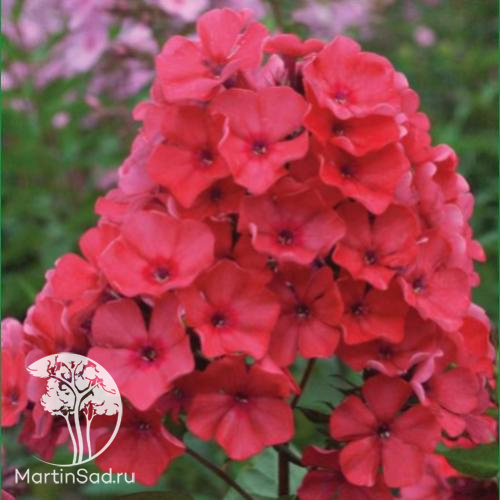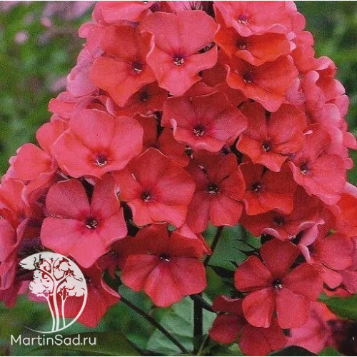 Флокс метельчатый Спитфайер - многолетнее цветущее растение, высотой взрослого растения до 90 см. Куст плотный и компактный, хорошо облиственный. Стебли прямостоячие, крепкие. Листья длинные и узкие насыщенно-зелёного цвета. Цветение пышное и обильное. Цветки диаметром до 4 см, оранжево-красные с карминным колечком. Соцветие овально-коническое, очень плотное. Цветки раскрываются медленно. Цветение с июня до сентября. После цветения побеги необходимо обрезать, чтобы растение снова зацвело. Сорт хорошо подойдёт для украшения цветников, миксбордеров, берегов водоемов, зоны отдыха, садовых дорожек, декорирования стен построек и оград, цветы хорошо стоят в срезке. Сорт красиво смотрится в одиночной посадке и поможет оформить пейзажную композицию с другими сортами флоксов, хвойниками, декоративными кустарниками и многолетними цветами. Растение неприхотливо, морозостойко, обладает крепким иммунитетом. Место посадки должно быть солнечным или полутенистым. Защита от полуденного солнца и от резких ветров поможет продлить жизнь этим прекрасным цветам, но при этом в густой тени снижается декоративность. Почва должна быть плодородной, дренированной. Между растениями оставляют расстояние около 30-40 сантиметров. Морозостойкость хорошая, зона 4 (до -34°С).