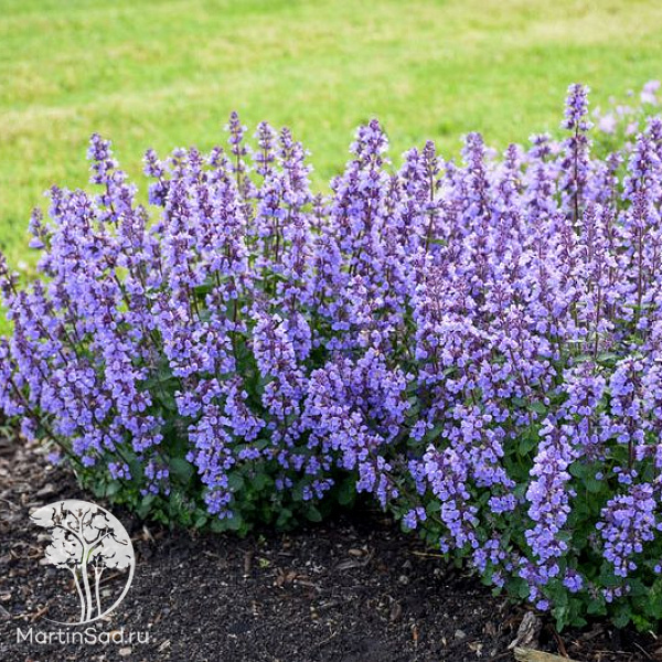 Котовник жильчатый Блю Мун - невысокий, почвопокровный сорт котовника. Цветки крупные, голубовато-синие. Кустик раскидистый, с серо-зелеными некрупными серебристо-голубоватыми листьями. Высота 30-40 см. Цветение обильное, в июне-июле-августе. Не болеет, запах отпугивает тлю, что полезно для окружающих растений, но благодаря своеобразному запаху манит к себе кошек как валерьяна. Котовник сажают в бордюры, рокарии, на передний план цветников и в миксбордеры. Свежие или засушенные листья используют для приготовления освежающего лечебного чая с высоким содержанием витамина С, традиционно используют для лечения таких состояний, как нервозность, бессонница, гиперактивность, простуда и лихорадка. Подходит как для одиночных, так и для групповых посадок. Может использоваться для посадки в контейнере. Для срезки в букеты и цветочные композиции. Место для посадки лучше подобрать солнечное, безветренное. Почва предпочтительна лёгкая, дренированная. Морозостойкость высокая Зона 4 (до -34°С).