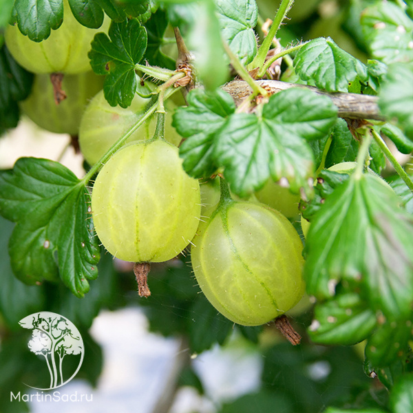 Крыжовник «Бялы Триумф» — это настоящая классика, один из старейших и проверенных временем сортов, известный многим под историческим названием «White Smith». Его главная гордость — крупные, красивые ягоды. В начале созревания они светло-зеленые, а к своей полной зрелости во второй половине июля приобретают привлекательный зеленовато-желтый, почти «медовый» оттенок. Плоды не осыпаются, имеют тонкую, слегка опушенную кожицу с уникальным рисунком из светлых прожилок. Вкус у них исключительный — гармоничный, кисло-сладкий, с приятным ароматом, что делает назначение ягод универсальным: от употребления в свежем виде до приготовления изумительного по цвету и вкусу варенья. Куст сильнорослый, может достигать двух метров в высоту, но при этом сохраняет компактную, нераскидистую форму. Однако будьте готовы к тому, что побеги хорошо armed — они покрыты многочисленными колючками, что усложняет сбор урожая. Этот сорт обладает умеренной зимостойкостью (до -23°C).