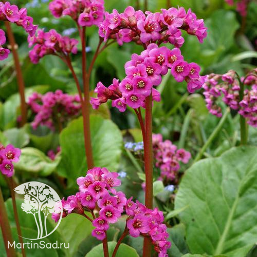 ОписаниеБадан «Винтерглют» — неприхотливый корневищный многолетник, ценимый за декоративность в течение всего сезона. Его грубоватые, кожистые листья темно-зеленого цвета имеют эффектную сердцевидную форму. Главная осенняя особенность — листва приобретает насыщенный пурпурный или бронзово-красный оттенок. Весной, в апреле-мае, растение расцветает. Над розеткой листьев поднимаются крепкие цветоносы, увенчанные яркими малиново-розовыми цветками, собранными в пышные соцветия. Взрослый куст достигает высоты около 40 см. Этот сорт прекрасно подходит для оформления тенистых уголков сада, рокариев и берегов водоемов, отличаясь особой выносливостью.