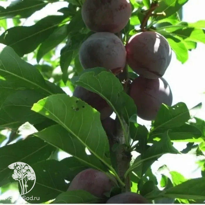 Шарафуга синяя — это уникальный межвидовой гибрид сливы, абрикоса и персика, который является одним из самых популярных экзотических растений для северного садоводства. Дерево отличается компактной раскидистой кроной, достигает высоты 3–4 метров и внешне напоминает сливу, однако обладает легкой курчавостью листвы, унаследованной от персика. Главная ценность гибрида заключается в крупных фиолетово-синих плодах весом до 60–80 г, которые имеют очень сладкую, сочную оранжево-розовую мякоть с многогранным вкусом: в недозрелом виде они напоминают сливу, а в полной спелости раскрываются нотами абрикоса и персика. Сорт характеризуется высокой скороплодностью, вступая в плодоношение на 3–4 год, и исключительной для южных культур морозостойкостью (до -30°C), что позволяет успешно выращивать его в условиях средней полосы. Шарафуга синяя устойчива к основным заболеваниям косточковых, плоды отлично держатся на ветках и не осыпаются, обеспечивая стабильный урожай ароматных фруктов с легко отделяющейся косточкой в конце августа.