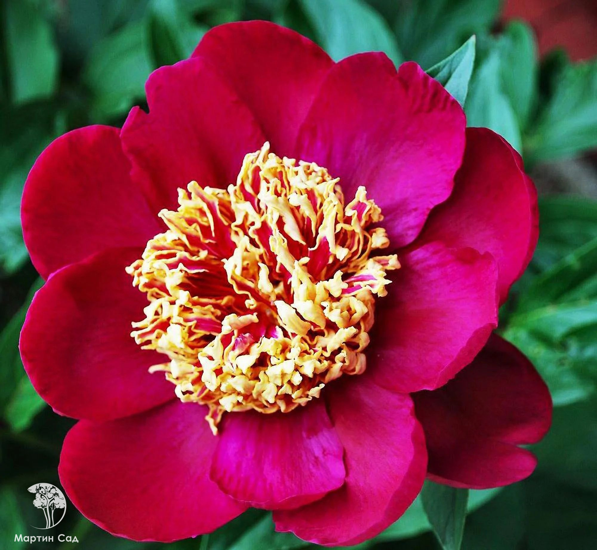 ОписаниеЦветки сорта большие, диаметром около 15-18 см, махровые, состоят из многочисленных лепестков, расположенных слоями друг над другом. Основная окраска цветков — яркий коралловый оттенок с теплым золотисто-желтым центром, создаваемым многочисленными стаминодиями. Это сочетание делает цветы особо выразительными и запоминающимися. Бутоны формируются достаточно рано и сохраняют свою декоративность на протяжении всего периода цветения.