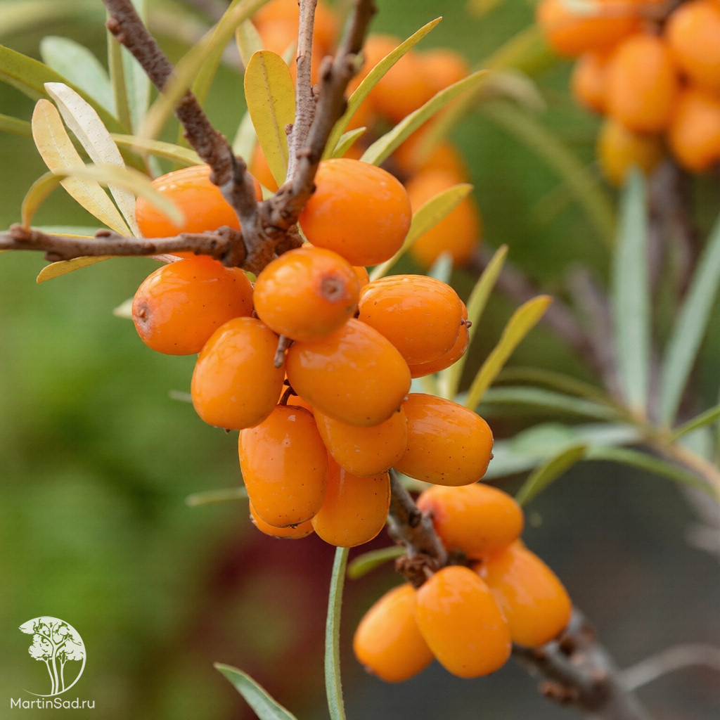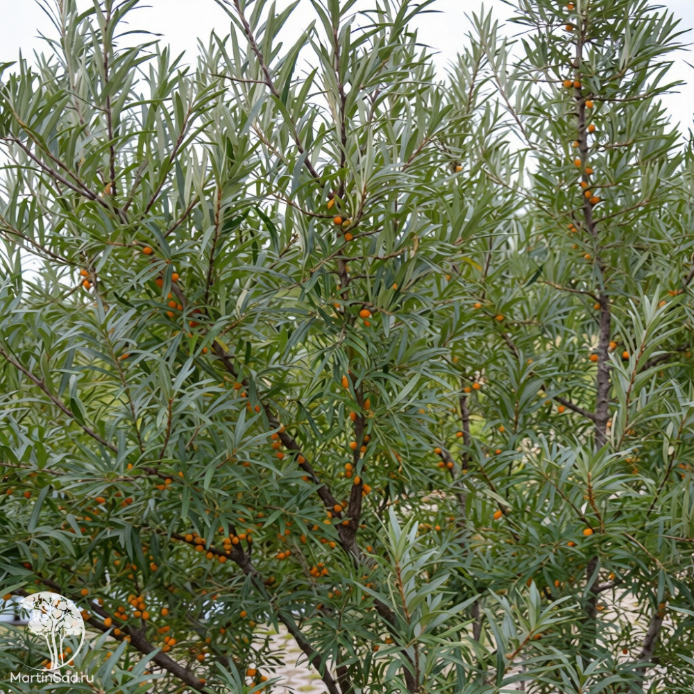 ОписаниеКуст сильнорослый, с аккуратной, хорошо сформированной кроной, достигает в среднем 2,5–3 м в высоту. Побеги прочные, с умеренным количеством колючек, что значительно облегчает уход и сбор урожая. Листья узкие, серебристо-зелёные, придают растению эффектный декоративный вид и делают его заметным элементом ландшафта даже вне сезона плодоношения.