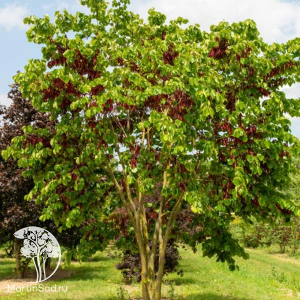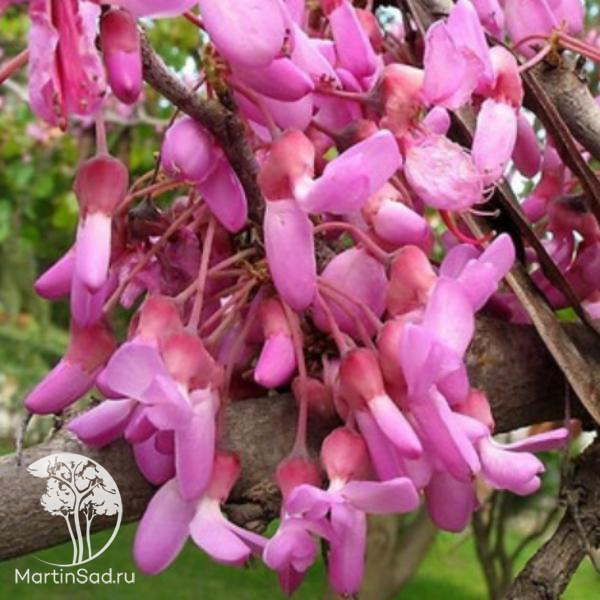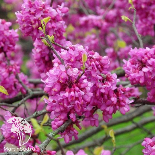 Церцис китайский (Cercis chinensis) представляет собой эффектное листопадное дерево или многоствольный кустарник, достигающий в культуре высоты 3–5 метров и обладающий раскидистой шатровидной кроной. Главной декоративной особенностью растения является каулифлория — обильное цветение ярко-пурпурными или розовыми пучками цветов, которые весной густо покрывают не только молодые побеги, но и старые ветви вместе со стволом еще до распускания листьев. Листва церциса имеет характерную сердцевидную форму и плотную текстуру: летом она окрашена в насыщенный изумрудно-зеленый цвет, а осенью приобретает яркие золотисто-желтые оттенки. Важной характеристикой является его умеренная морозостойкость: вид относится к зоне 6 (до -23°C), что требует посадки в защищенных от ветра местах и профилактического укрытия молодых саженцев в условиях средней полосы. Растение отличается медленным ростом, глубокой стержневой корневой системой и высокой засухоустойчивостью, предпочитая солнечные участки с дренированной почвой. К концу сезона на дереве созревают декоративные плоские бобы, которые могут сохраняться на ветвях до зимы, придавая растению особый архитектурный облик.