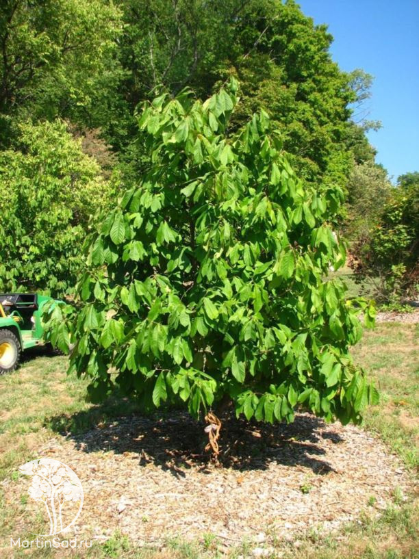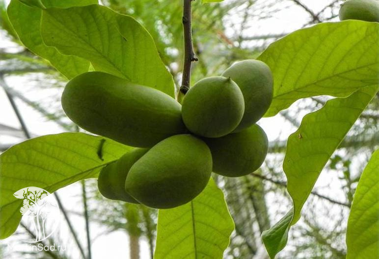 ОписаниеДерево формирует великолепную, плотную крону широкопирамидальной формы, которая благодаря своим огромным поникающим листьям превращает любой сад в филиал южного курорта. Взрослое растение достигает высоты 4–5 метров, становясь величественным акцентом ландшафта. Максимальной высоты азимина достигает к 12–15 годам, развиваясь с умеренной скоростью и прибавляя ежегодно около 20–25 сантиметров. Цветение начинается в мае: на ветвях распускаются необычные поникающие цветы глубокого винно-коричневого цвета со специфическим ароматом, который привлекает естественных опылителей. Плоды созревают во второй половине сентября или начале октября, радуя владельца щедрым урожаем крупных, ароматных плодов, собранных в эффектные грозди.