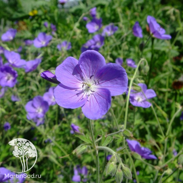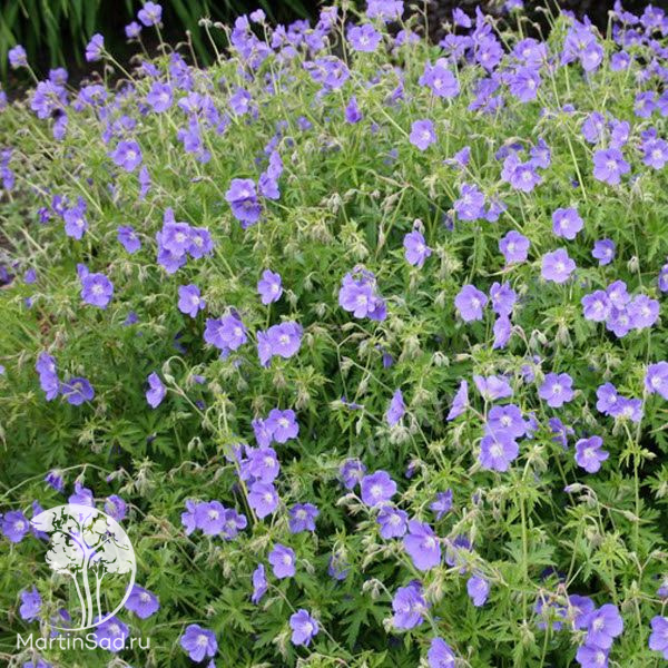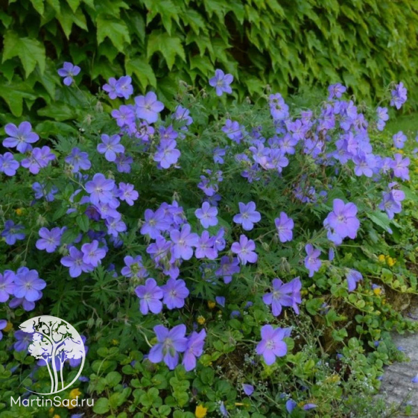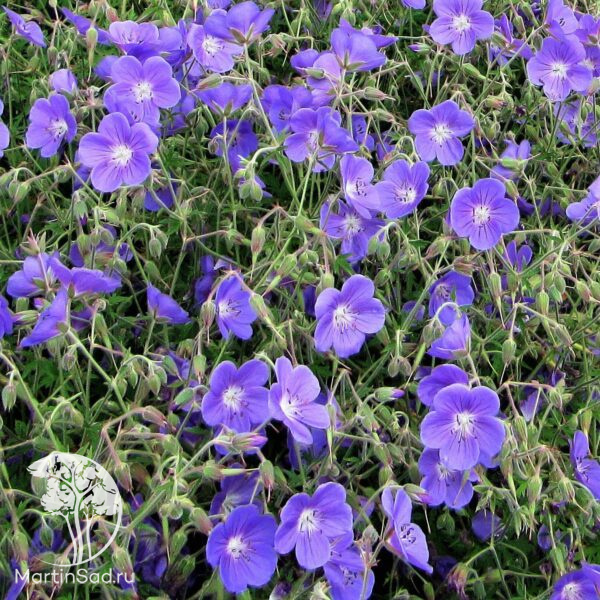 Многолетнее травянистое растение высотой 40–60 см и диаметром до 50 см с раскидистой плотной кроной; отличается обильным цветением с июня по июль, образуя крупные (до 5 см в диаметре) фиолетово‑синие цветки с белым центром и тёмными прожилками; листья ярко‑зелёные, пальчато‑рассечённые, с лёгким опушением и приятным ароматом; предпочитает солнечные места или лёгкую полутень, хорошо дренированную почву нейтральной или слабокислой реакции; неприхотлива в уходе, морозостойка (зона USDA 4, до −34 °C), подходит для клумб, бордюров, миксбордеров и контейнерных посадок.