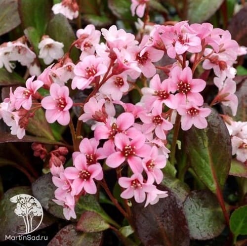 Пример с сайта "Мартин Сад": Бадан "Pink Dragonfly" — сорт с розовыми цветами, который идеально подходит для оформления бордюров и альпинариев.